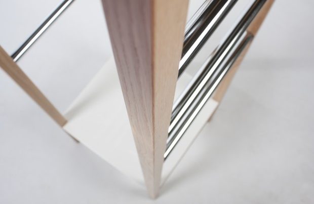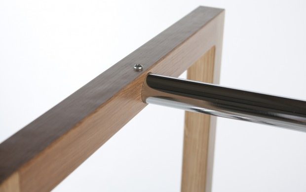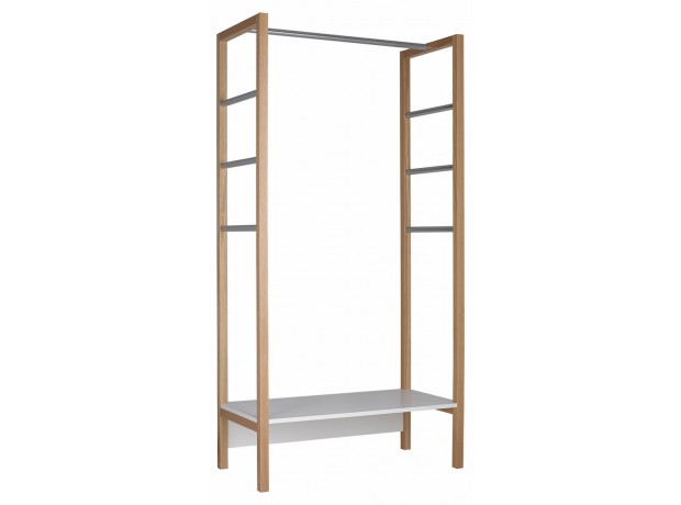 Brīnišķīgi papildiniet priekšnamu ar izturīgu un modernu virsdrēbju statīvu. Plaukts statīva lejas daļā sniegs papildus vietu somiņu vai apavu novietošanai. Ozola koka, hromēta tērauda un baltā toņa kombinācija skaisti papildina dažādus interjerus.