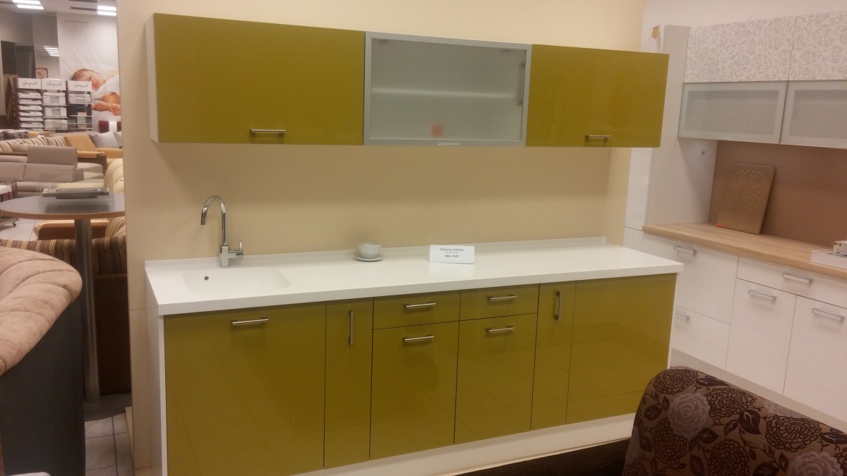 Virtuves komplektā ietilpst augšējie un apakšējie virtuves skapīši.